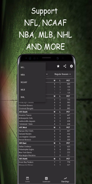 - Personaliza tu horario siguiendo equipos, divisiones o conferencias específicos.