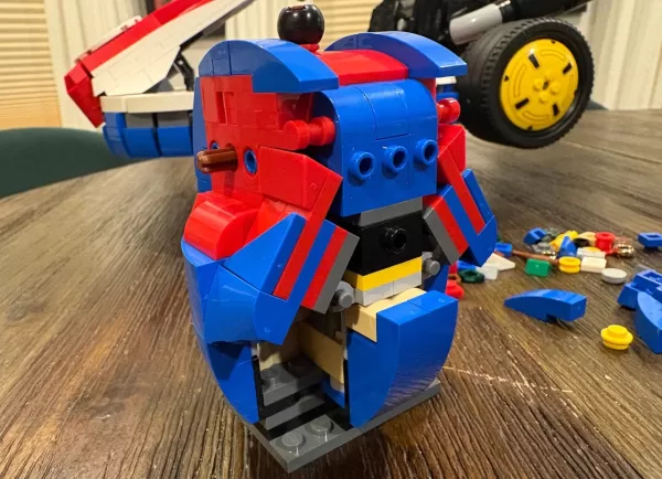 Après le kart, vous construisez Mario, suivant un processus similaire au puissant ensemble de Bowser il y a trois ans. Vous commencez par le torse, en utilisant des connexions à balle et à socle, puis attachez les jambes, les bras et enfin la tête et le chapeau. Le chapeau, en particulier, est une construction complexe, avec deux pièces plus petites attachées pour créer sa forme de pliage de signature.