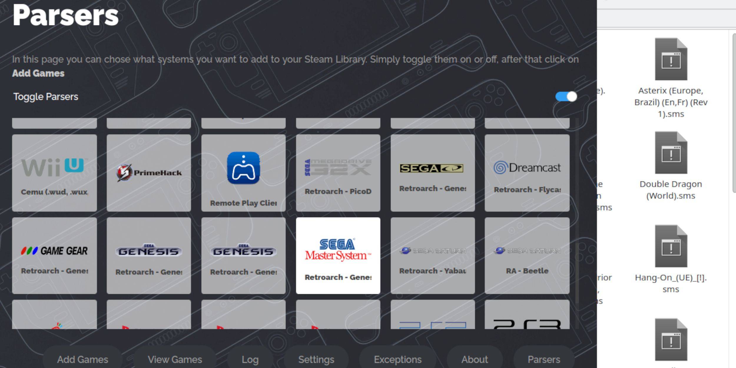 安装了Retroarch和Emudeck,是时候将您的SEGA Master System ROM转移到各自的文件夹了: